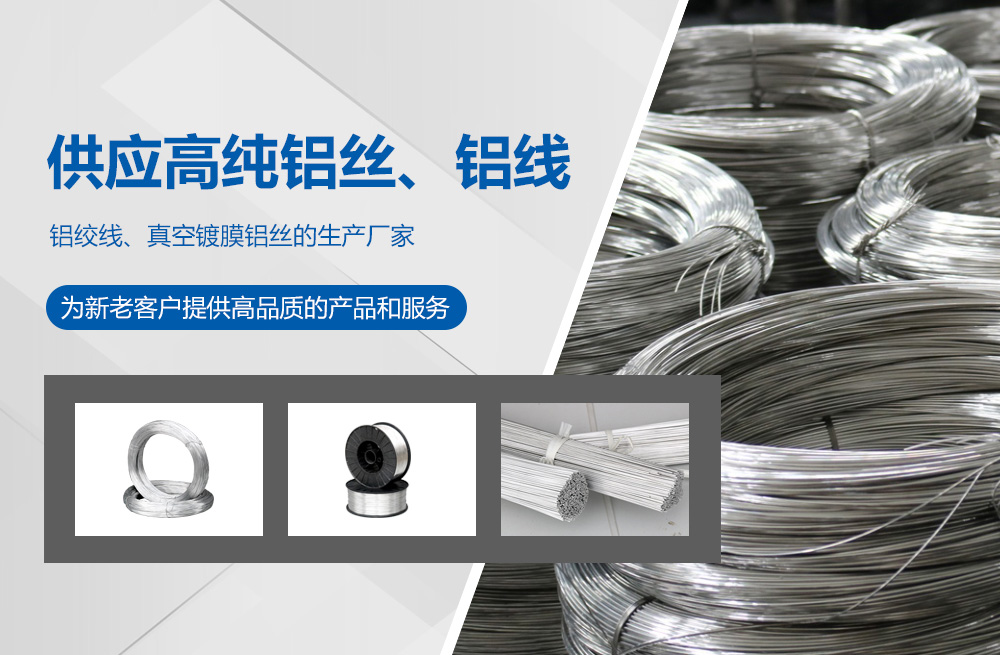 高純度鋁絲:公司主打產品。SGS認證產品,適用于真空鍍鋁。純度99.9%。可為客戶量身定做生產的各盤裝鋁絲、鋁直條。產品應用領域十分廣泛,如:真空鍍鋁膜、電器儀表、電子、家電業、電線電纜業、建筑裝飾業、五金裝飾業、IT電腦業、廣告裝飾業、醫療器械、工藝制品、防腐制品(大型港口、橋梁、碼頭)、食品包裝容器、紡織服裝等。